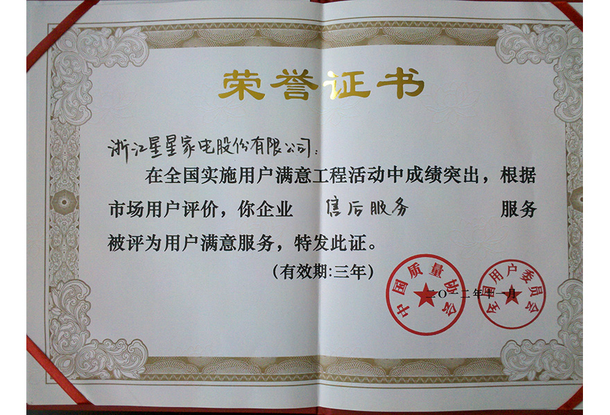 201211 用户满意服务 证书