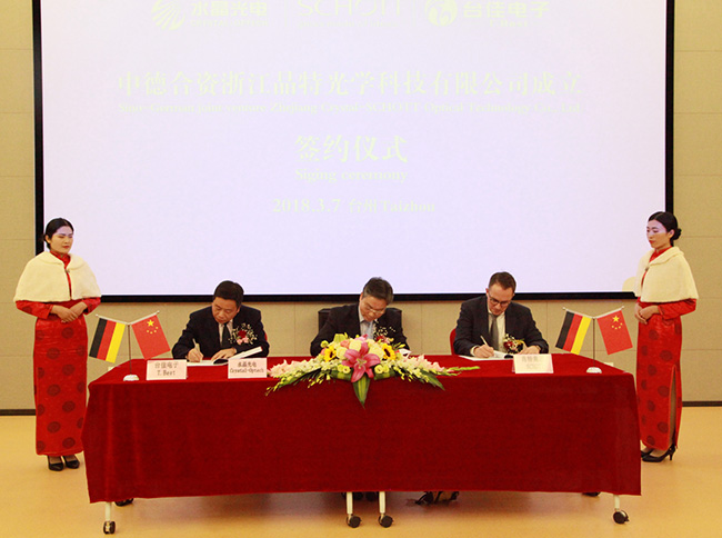 3月7日下午,中德合资浙江晶特光学科技有限公司成立仪式在水晶光电综合楼博学厅举行。椒江区政府副区长卢建波、区府办、区发改局、区经信局、集聚区椒江分区管委会、区商务...